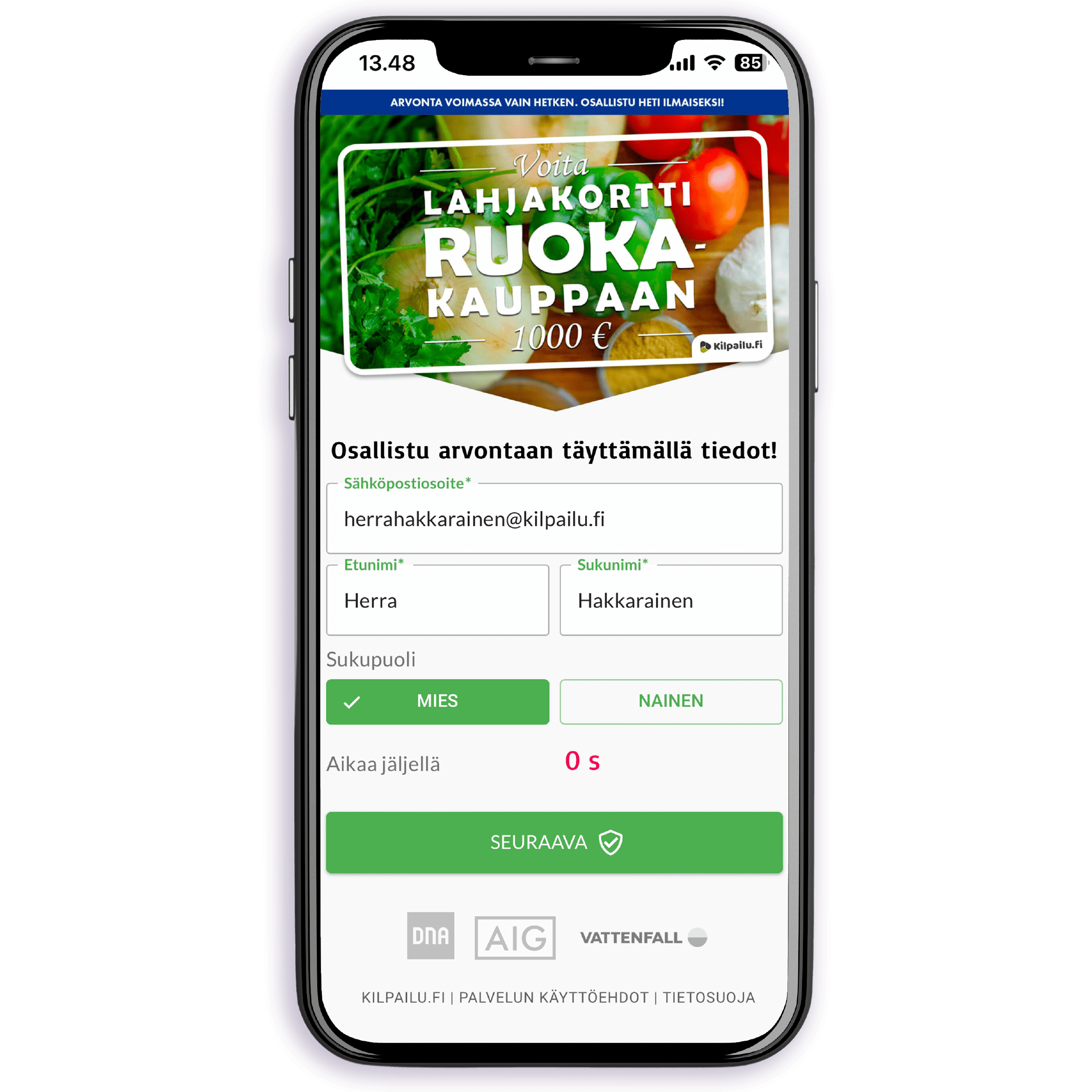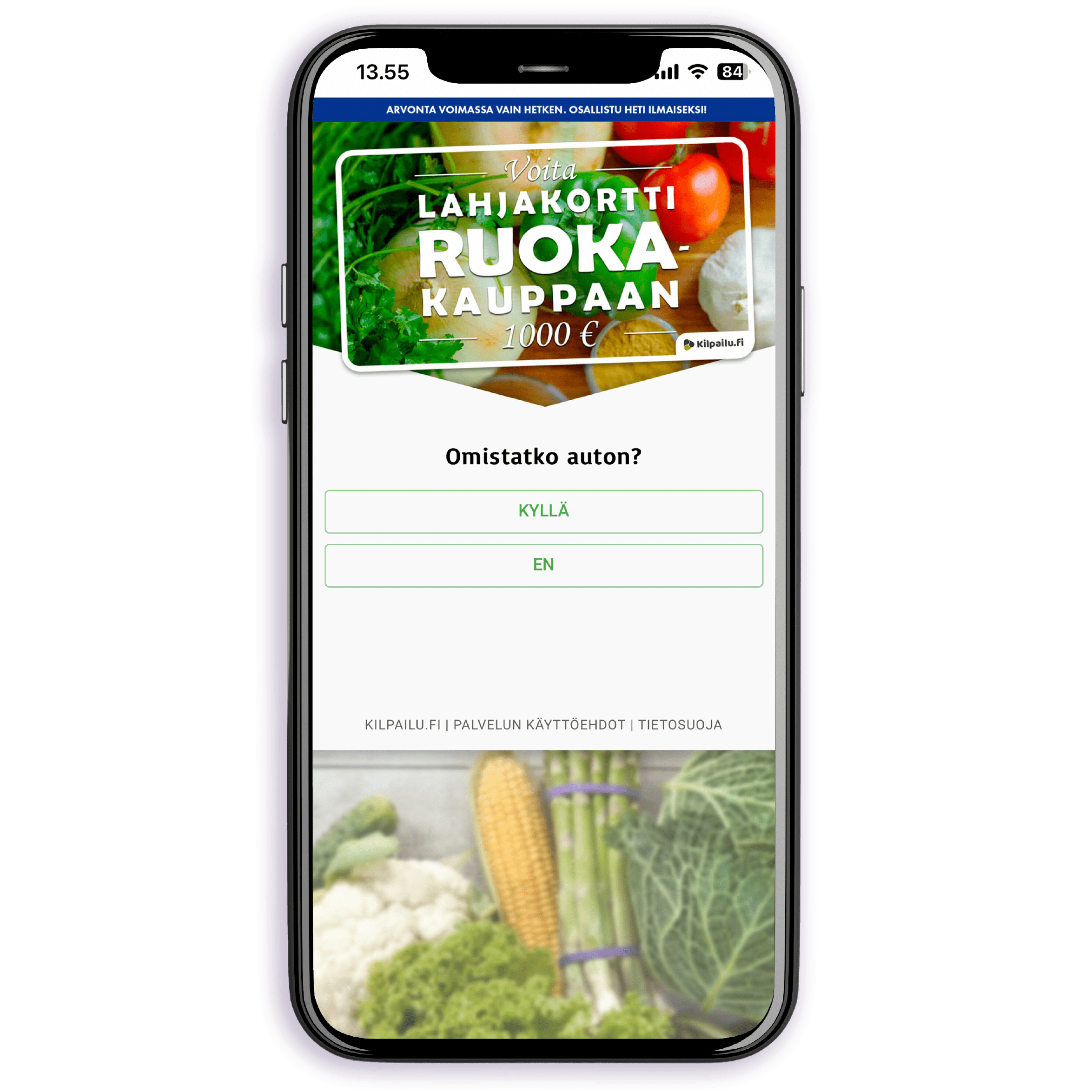 Toimintamme on mahdollista yhteistyökumppaneidemme ansiosta. Tästä syystä pyydämme sinua vastaamaan arvonnan yhteydessä olevaan kyselyyn, jossa on yhteistyökumppaneidemme kysymyksiä. Vastauksiesi perusteella saatat saada muutamia puheluita tai viestejä kumppaneiltamme liittyen heidän tuotteisiin tai palveluihin. Voit myös halutessasi tilata erilaisia tuotteita tai palveluita suoraan arvonnan sisältä.